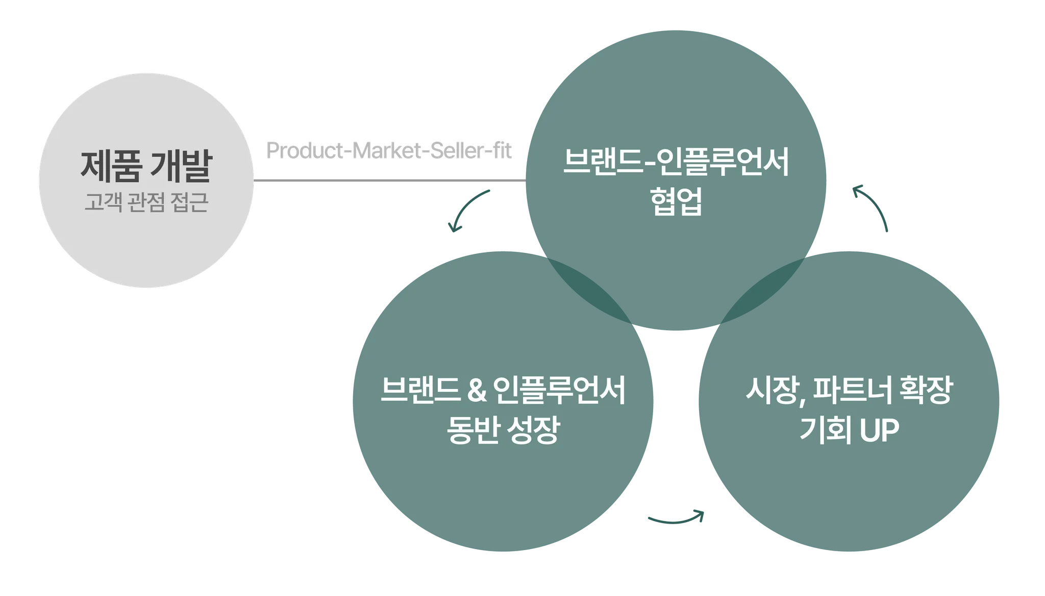 SNS 시장을 기반으로 D2C 소비재 브랜드를 개발하여 고객 중심 제품을 인플루언서 커머스 / 콘텐츠 마케팅 / 바이럴 마케팅 / 온오프라인 유통 / 해외수출 등 다양한 채널을 기반으로 성장하는 것이 목표입니다. 뷰티,헬스,리빙 3축의 도메인에서 소비자들의 Pain Point를 해결하려 합니다.